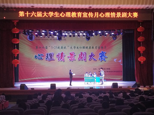 九江职院新闻网讯(马克思主义学院 校团委) 6月5日晚,由马克思主义学院、校团委主办的第十六届“5·25”大学生心理健康教育宣传月---心理情景剧大赛在十里校区大礼堂举行,各二级学院负责人和师生代表近千人观看了比赛。