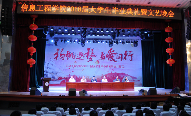 九江职院新闻网讯(信息工程学院)6月12日19时,信息工程学院“扬帆逐梦·与爱同行”2018届大学生毕业典礼暨文艺晚会在十里校区大礼堂举行。校长曾青生,副校长刘南平、彭晓兰出席,教务处、学工处、团委等部门负责人及该院800余名师生参加。该院党总支书记汤新祥主持毕业典礼。