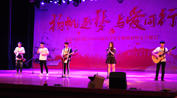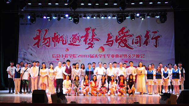 文艺晚会上,器乐弹唱《安和桥》、舞蹈《寄明月》展示了信息学子的青春与活力;手语《明天你好》表达了青年学生对未来的美好憧憬;传统技艺表演则把传统技艺和专业特点完美结合;毕业生配乐诗朗诵《再见了,我的大学》,带领大家回忆了大学充实、温馨的生活,一幕幕情景再现、一句句真情流露,将整场晚会推向高潮;最后师生联唱《强国一代有我在》,号召大家要把中华民族伟大复兴的历史责任担在肩上,勇做走在时代前面的奋进者、开拓者、奉献者,晚会在全体演出人员和现场观众的齐声高唱中圆满结束。