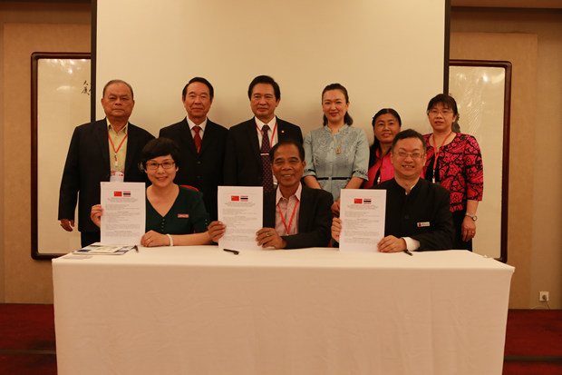 彭晓兰分别与清莱职业学院、披集农业技术学院等泰国院校进行了接洽会谈,重点就专业匹配、优势资源、项目前景等方面进行评估,特别从我校三级重点建设专业出发,针对招收培养留学生、教师科研等项目交换意见并达成共识。泰方希望在能源科技、智慧农业、旅游商贸等领域开展合作。会上,我校与清莱职业学院校长Pariwat Chaiprasoet、披集农业技术学院校长Thanintr Sangnoi、碧差汶农业技术学院校长Panom Keawnakupapha签署合作备忘录,签约高校将作为友好学校开展互访活动,增进彼此了解,推动专业建设、教学科研、文化融通等方面合作与交流,致力于为合作院校双方输送和培养具有国际视野的高素质、复合型人才,服务“丝绸之路经济带”沿线国家的发展建设。