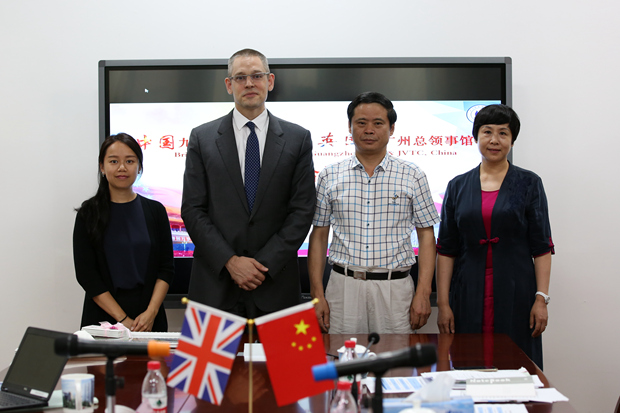 九江职院新闻网讯(国际合作交流中心 欧阳祥宇)6月28日,英国总领事馆文化教育领事、英国文化教育协会华南区主任Ralph Rogers先生,英国总领事馆文化教育处教育和英语项目官员Wing Feng女士一行访问我校。校长曾青生接见Ralph Rogers先生一行并出席合作洽谈会议,双方在濂溪校区图书馆208会议室进行了座谈。会议由副校长彭晓兰主持,相关职能部门及学院负责人参加。