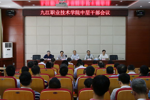 九江职院新闻网(党委宣传部)8月31日下午,我校在十里校区2号学术厅召开新学期首次中层干部会议,回顾总结上半年主要工作,部署安排下半年重点任务。党委书记魏寒柏主持会议,党委副书记、校长曾青生,党委副书记刘南平,副校长汪永根,纪委书记殷锡武出席,全体中层干部参加。