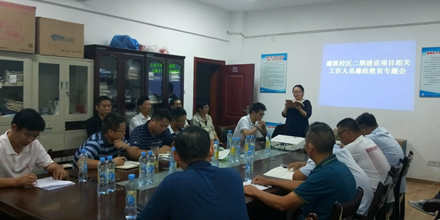 九江职院新闻网讯(基建处)9月6日下午,我校召开濂溪校区二期建设项目相关管理人员廉政教育专题会,校党委委员、副校长汪永根主持会议并讲话,校纪监办,审计处、基建处、濂溪校区二期建设项目负责人以及施工单位、监理单位、全过程跟踪审计单位代表等20余人参加会议。