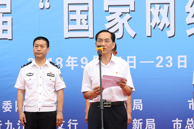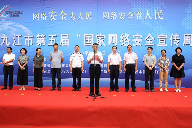 九江职院新闻网讯(党委宣传部)9月17日上午,九江市第五届“国家网络安全宣传周”活动启动仪式在我校濂溪校区举行。市委宣传部副部长代和沐出席并讲话,校党委副书记刘南平出席仪式,市公安局、市国安局、市教育局、市工信委、人行九江中心支行、市文广新局、市总工会、团市委、市妇联等相关负责人,以及地方、企业、媒体、学生代表近300人参加,启动仪式由市网信办专职副主任欧阳小竹主持。