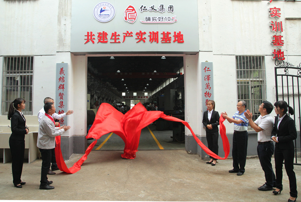 九江职院新闻网讯(工程训练中心)10月8日下午,我校与仁义集团合作共建的“九职·仁义共建生产实训基地”签约揭牌仪式在十里校区工程训练中心举行。校党委书记魏寒柏、副校长汪永根、仁义集团总经理葛东阳出席,学校共建生产实训基地管理委员会成员以及部分企业代表、校友代表参加。仪式由工程训练中心负责人黄晓东主持。