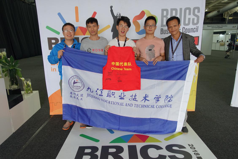 九江职院新闻网讯(机械工程学院)9月28日-10月6日,在南非举行的2018一带一路暨金砖国家技能发展与技术创新大赛总决赛——智能制造赛项落下帷幕。经过多日多轮次比赛,我校机械工程学院连俊茂、陈军源两位老师指导的叶廷茂、彭伟光、陈勇三名学生团队代表中国参加智能制造赛项,并以总分第一的成绩获得一等奖。