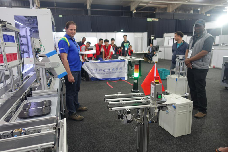 为积极筹备本次大赛,在学校领导和国际合作交流中心的关心支持下,经过一年多的精心准备与刻苦训练,选手历经国内选拔赛、决赛和国际选拔赛三层次的激烈角逐从众多职业院校中脱颖而出,最终与另外两所国家示范性院校北京电子科技职业技术学院、宁夏职业技术学院组建三支代表队代表中国进入到此次南非国际决赛,与其他金砖国家选手同台竞技。此次智能制造赛项比赛平台是由世界技能大赛指定的国际知名企业Festo公司提供的,选手克服竞赛设备不熟练、语言沟通障碍、饮食文化差异等困难,完成了所参与赛项的所有比赛内容,体现了较高的实践能力和综合素质,实现了我校学生参与国际赛项成绩的历史性突破。