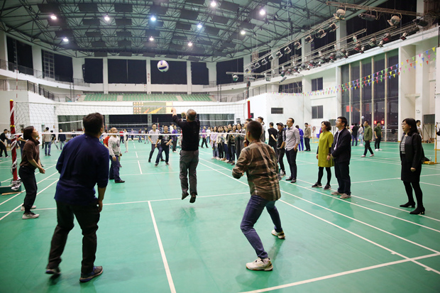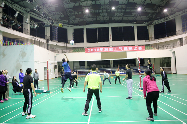 16日19时30分,比赛在十里校区体育馆三楼拉开帷幕,各分会参赛队200余名教职工运动员欢聚一堂,现场人声鼎沸,充满欢声笑语。比赛过程中,更是精彩激烈,妙趣横生,一个个巧妙的传接配合和精准的开网吊球赢得了在场观众的阵阵掌声,赛出了水平、赛出了风格、赛出了友谊,充分展现了我校教职员工积极向上、健康快乐、团结协作、勇于挑战的精神面貌。17支代表队的党政领导、工会主席场场必到,既当指挥员又当战斗员,激励着队员们顽强拼搏,为了集体荣誉奋勇争先。