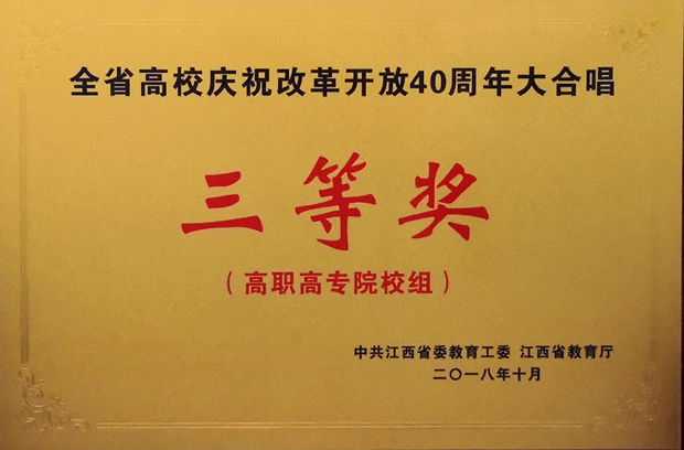 九江职院新闻网讯(学工处黎燕)10月22日,由省委教育工委、省教育厅主办,教育工委宣传部承办的“全省高校庆祝改革开放40周年大合唱比赛”决赛在江西财经大学举行,我校合唱团在比赛中荣获高职组三等奖。