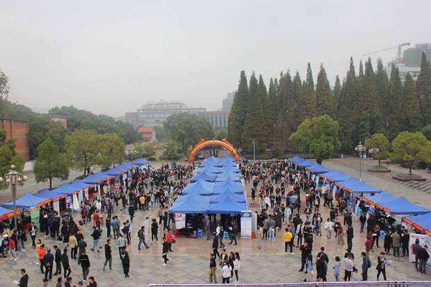 九江职院新闻网讯(招生就业处 罗应棉)10月20日上午,我校首场2019届毕业生校园大型综合招聘会在十里校区馨园广场举行。纪委书记殷锡武到场指导,了解用人单位招聘需求,鼓励毕业生积极应聘。本场招聘会共吸引近5000名毕业生参加。
