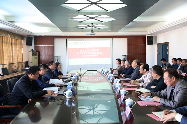 贾桂业代表专家组对我校近年来就业工作所取得的成效表示充分肯定,并阐释了本次毕业生就业工作评估的重要意义以及评估考察的工作程序。