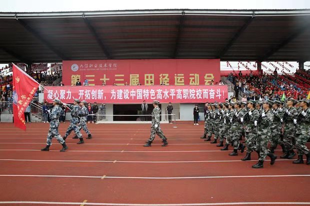 8点30分,校长曾青生宣布九江职业技术学院第三十三届田径运动会开幕!