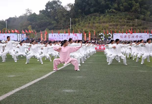开幕式上,700余名师生共同登台献上健身气功八段锦、健美操和军体拳等大型文体操表演。