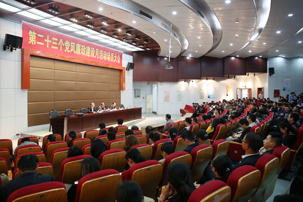 九江职院新闻网讯(纪监办)11月2日下午,我校在十里校区4号学术厅(新时代文明实践中心)召开第二十三个党风廉政建设月活动动员大会。党委书记魏寒柏出席并作动员讲话,会议由党委副书记刘南平主持,纪委书记殷锡武出席并部署活动方案。全体教工党员、副科级以上干部、教研室主任、后勤集团班组长及学生党员代表近400人参加大会。