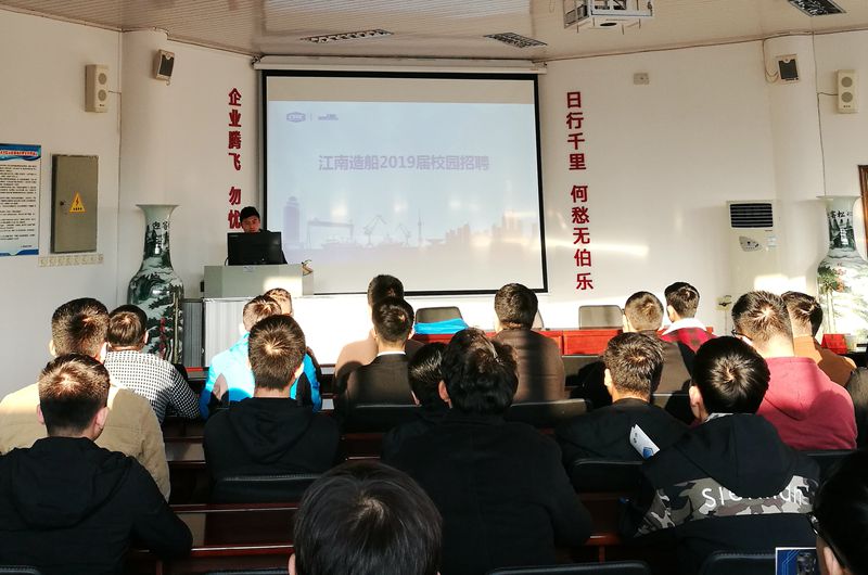 招聘会现场,黄威(我校校友)副主任首先对毕业生积极参加公司专场招聘会表示热烈欢迎,接着将企业历史沿革、产品范围、发展状况、岗位需求和待遇情况做了详细宣讲。在互动环节,吴刚部长针对毕业生们所提出的企业用工性质、职业发展方向、岗位工作要求等方面问题进行了一一解答,现场气氛热烈、和谐。经过现场宣讲、互动答疑、面试环节的层层选拔,最终16名毕业生与江南造船集团公司顺利签约。