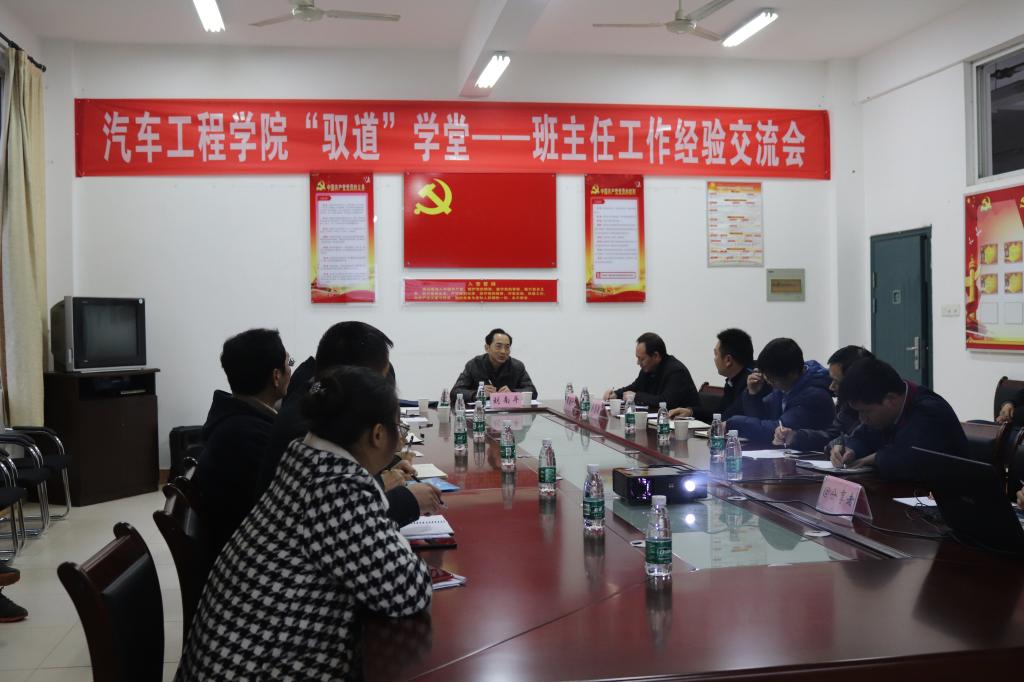 九江职院新闻网讯(汽车工程学院 汪卉)为有效推进学院学生工作,强化班级管理,提升班主任队伍整体水平。11月21日16时,汽车工程学院在十里校区4号教学楼218会议室举办“驭道”学堂暨2018—2019学年第一学期班主任工作经验交流会。校党委副书记刘南平出席,学工处、校团委及该院领导、辅导员、班主任参加会议。