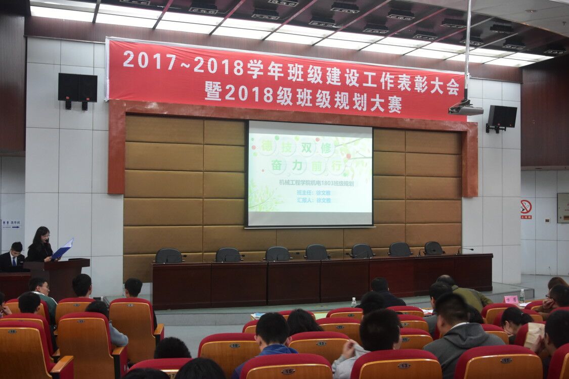 九江职院新闻网讯(学生工作处 团委)11月21日19时,我校在十里校区4号学术厅(新时代文明实践中心)举办2017—2018学年班级建设工作表彰大会暨2018级班级规划大赛。党委副书记刘南平出席,相关部门负责人,各二级学院学生工作干部,2018级全体班主任、班长和团支书近400人参加大会,校团委主持工作的副书记许静主持。