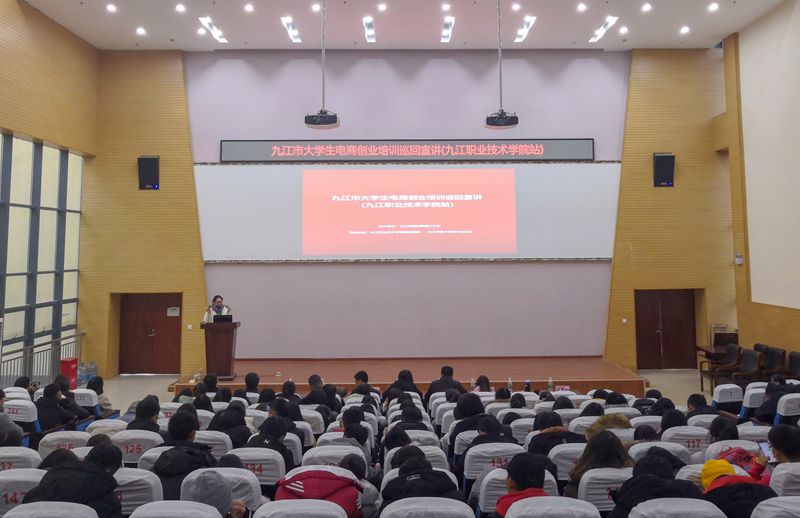 九江职院新闻网讯(经济管理学院 王浩力 陈兴发)12月11日15时,由九江市商业管理办公室、九江市电商协会主办,我校经济管理学院承办的“九江市大学生电商创业培训巡回宣讲”活动在濂溪校区图书馆多功能厅(新时代文明实践中心)顺利举行。省青联委员、九江市电商协会会长付莹莹,江西省挚诚律师事务所主任钱钧、江西小红帽网络公司总经理吴为、万其电商学院院长潘春雨及经济管理学院负责人占跃华出席,九江市电商协会企业代表和我校师生代表近300人参加。