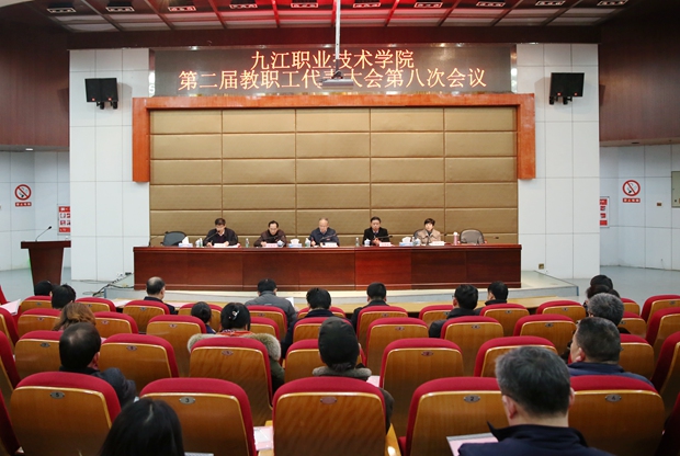 九江职院新闻网讯(党委宣传部 校工会)3月8日14时,我校第二届教职工代表大会第八次会议在十里校区4号学术厅(新时代文明实践中心)胜利召开。党委书记魏寒柏,党委副书记、校长曾青生,党委副书记刘南平,副校长彭晓兰、汪永根出席会议。会议由汪永根主持。全体代表认真听取了大会主题报告并进行了讨论和审议,圆满完成了各项议程。