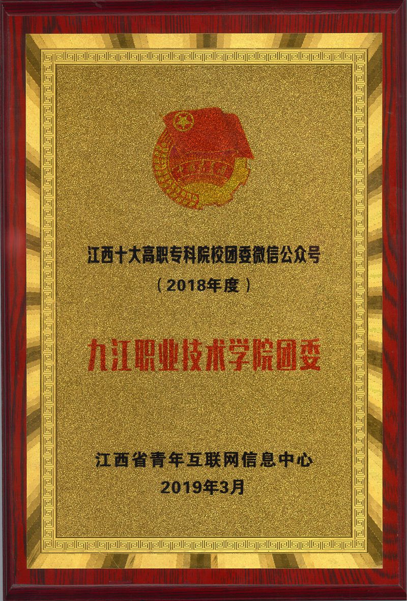 九江职院新闻网讯(校团委 于永辉)近日,团省委在井冈山举办“青春心向党,建功新时代”江西共青团新媒体颁奖典礼。我校团委微信公众号获评2018年度“江西十大高职专科院校团委微信公众号”。