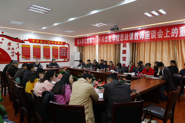 魏书记强调,传道者自己首先要明道、信道,育人者要先受教育。并就学深悟透做实习近平总书记重要讲话精神,提出了四点要求。一要深刻领会习近平总书记在学校思想政治理论课教师座谈会上重要讲话的重大意义。把学习贯彻讲话精神,与学习贯彻习近平总书记近年来关于教育的重要论述结合起来,与贯彻落实全国教育大会精神结合起来,落实好用习近平新时代中国特色社会主义思想铸魂育人、贯彻党的教育方针落实立德树人根本任务的要求。二要在提升教学质量上下功夫,努力打造学校“第一课”。树立“讲好每堂课、培育一代人”的理念,推动思政课改革创新,不断提升思政理论课教学实效。三要在加大实践育人力度上下功夫,联合打出一套“组合拳”。统筹协调课内外、校内外各方面资源,突破范式,发挥优势,共同参与“实践育人共同体”,努力把思想政治工作贯穿教育教学全过程。四要在思政教师队伍建设上下功夫,全力锻造一支“梦之队”。要对标习近平总书记提出的“六要”,用高尚的人格感染学生、赢得学生,用真理的力量感召学生,以深厚的理论功底赢得学生;要重点抓好项目建设,用理论研究项目带动思想课教学效果提升。