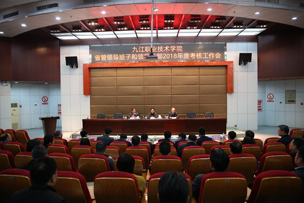九江职院新闻网讯(党委组织部)根据省委统一部署,3月27日下午,我校在十里校区4号学术厅召开学校领导班子和领导干部2018年度考核测评大会。省委第一考核组副组长、省委组织部干部四处处长梁文懋同志等7名考核组成员到会指导。校党委书记魏寒柏主持大会,党委副书记、校长曾青生等学校领导班子成员,中层正职、部分正高职称人员及教职工代表70人参加考核测评大会。