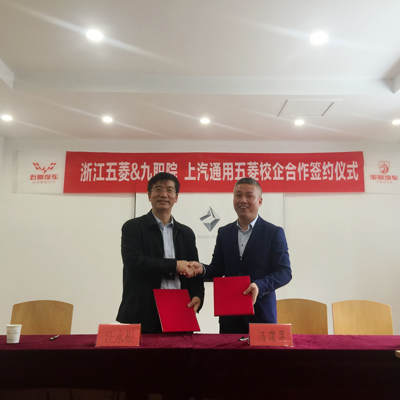九江职院新闻网讯(汽车工程学院 仝玺)3月28日,我校与浙江五菱有限公司校企合作签订仪式在杭州浙江五菱有限公司会议室举行,副校长汪永根、浙江五菱有限公司总经理汤渭萍、北京小车匠信息系统有限公司副总经理张文军出席。