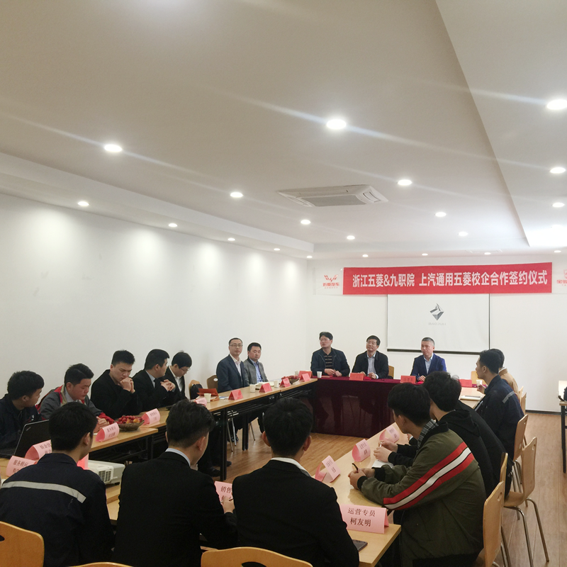 签约仪式上,汤渭萍总经理代表企业对汪永根一行的来访表示热烈欢迎,介绍了上汽通用五菱的发展历程、基本情况及主要产品。汪永根副校长介绍了学校的发展历史、基本情况和近年来校企合作取得的成果,并希望能与五菱集团开展高水平、全方位合作,本着服务学生成长成才原则,共同制定人才培养方案,共同开发课程资源,实现共建、共育、共享、共赢的良好格局,形成可复制的校企合作典范。并签署了校企双方合作协议。