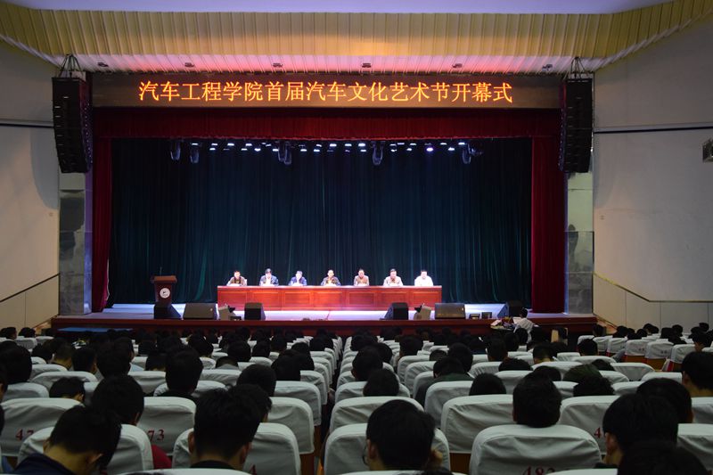 黄经元宣布首届汽车文化艺术节开幕。汽车工程学院教师朱志成、学生彭佳欣分别发言。