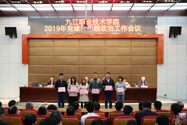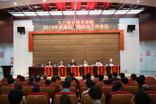 九江职院新闻网讯(党委宣传部)4月16日下午,我校在十里校区四号学术厅(新时代文明实践中心)召开2019年党建和思想政治工作会议,党委书记魏寒柏出席会议并讲话,党委副书记、校长曾青生,党委副书记刘南平,党委委员、副校长彭晓兰、汪永根,党委委员、纪委书记殷锡武出席。全体中层干部,全体党务工作者、思政工作人员参加。会议由刘南平主持。