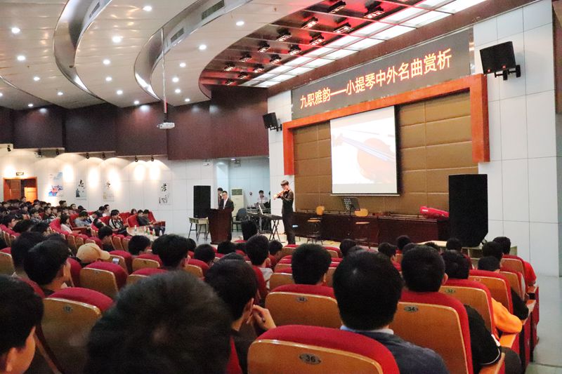 九江职院新闻网讯(学生工作处 余卫东)4月28日19时,学工处、团委在十里校区四号学术厅(新时代文明实践中心)联合举办博雅论坛之“九职雅韵—小提琴中外名曲赏析”艺术讲座,党委副书记刘南平、团委主持工作的副书记许静出席,校素拓中心余卫东老师现场讲析,近400名学生参加。
