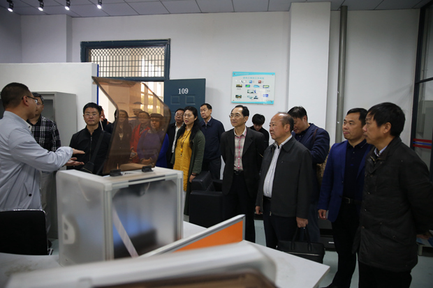 严平一行考察了十里校区工业工程中心,参观了3D创客空间、工业机器人实训室、航海虚拟仿真实训室、焊接实训室、轮机实训室等实践教学场所。在濂溪校区,实地察看了经济管理学院京东校园实训中心和京东派;参观了建筑工程学院党员活动中心、鲁班学院、鲁班工坊,了解了“鲁班菁英育人工程”等文化品牌建设情况。