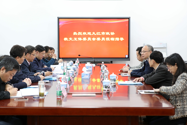 九江职院新闻网讯(党委宣传部)4月29日下午,九江市政协副主席严平率教文卫体政协委员一行26人深入我校开展调研活动,党委书记魏寒柏、党委副书记刘南平陪同,党委相关部门负责人参加。