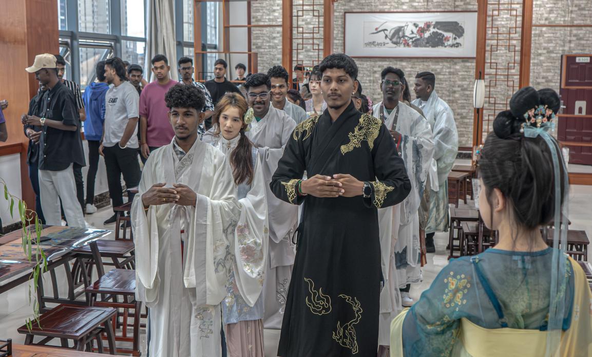 本网讯(校团委 国际合作交流中心 图书馆)为深化中马青年文化交流,推动中华优秀传统文化交流互鉴。10月18日—19日,我校在濂溪校区图书馆、科创楼智慧教室组织开展“触摸非遗技艺 感知中华文化”中马青年非遗印象文化体验活动。来自马来西亚的25名留学生与我校学生社团成员共60余人齐聚一堂,通过汉服体验、茶艺品鉴以及中国结、扎染、漆扇、竹编制作等非遗技艺的沉浸式体验,共同构建一场文化互鉴的青春盛会。