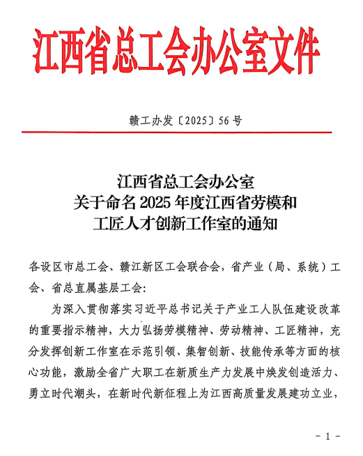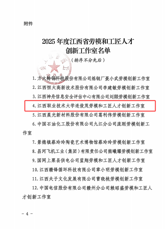 本网讯(工程训练中心)近日,江西省总工会公布2025年江西省劳模和工匠人才创新工作室名单,我校“连俊茂劳模和工匠人才创新工作室”成功入选。