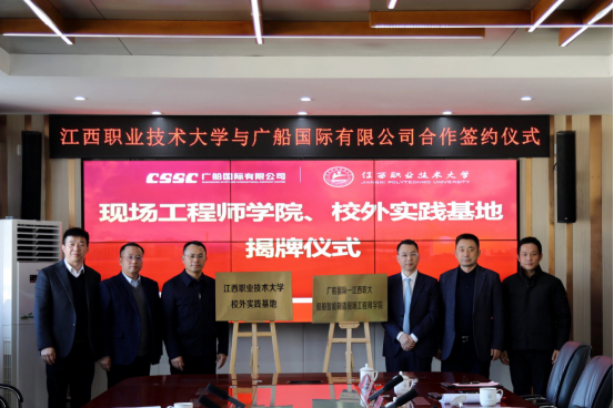 仪式上,双方代表先后签署《校企合作框架协议》《党建共建协议》及《校企合作班协议》。刘小强与周旭辉共同为“现场工程师学院”“校外实践基地”揭牌,广船国际还向学校捐赠了象征行业匠心与远航梦想的船模。
