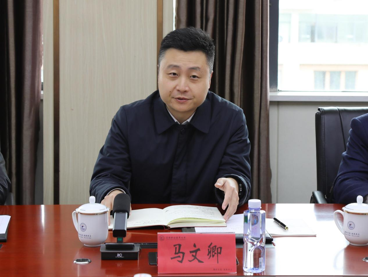 交流会上,刘小强代表学校对马文卿一行的到来表示热烈欢迎,并从我校的办学历程、职本建设、专业布局、产教融合等方面详细介绍了教育教学情况以及所取得的成果。他表示,学校坚持以服务地方经济社会发展为己任,期待与彭泽县在高层次人才引育等方面紧密合作,推动政企校联动,探索建立化工产业联合创新研究中心,精准对接县域产业发展需求,为彭泽县高质量发展提供人才支撑和智力支持。