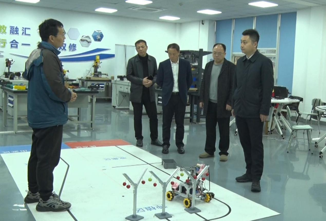 马文卿一行还先后参观了工业工程中心、船舶智造大楼等实训基地,实地了解我校专业建设、实训教学、产教融合以及科技创新等方面建设成果。下一步,学校将与县政府尽快建立沟通对接机制,深化校地合作产教融合,助力县域经济高质量发展。
