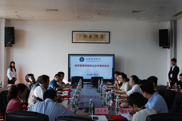 九江职院新闻网讯(经济管理学院)5月8日下午,经济管理学院2018校企合作论坛在濂溪校区图书馆会议室成功举行。论坛由该院主持工作的副院长占跃华主持,来自京东集团、广州粤嵌、鲜丰水果、上海爱谱华顿、上海紫燕、新道科技、中教畅享、深圳中诺思、顺丰速运等企业代表以及经管学院专业负责人共30余人参加。