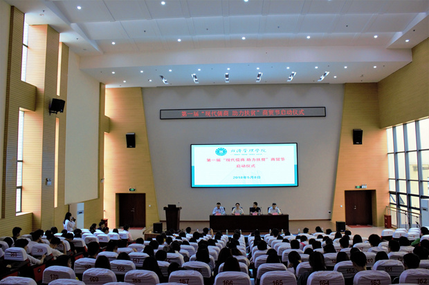 九江职院新闻网讯(经济管理学院 余小舰)5月8日14时30分,由经济管理学院、校企合作中心、产教融合发展中心、校扶贫工作队联合举办的首届“现代儒商助力扶贫”商贸节启动仪式在濂溪校区图书馆多功能厅举行。