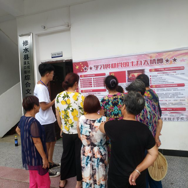 “卓越·荣耀”科技支农帮扶服务队师生在“三下乡”活动中积极宣传贯彻习近平新时代中国特色社会主义思想和党的十九大精神,助力精准扶贫和新农村建设,增强服务社会的本领,展现了良好的精神风貌。