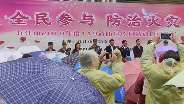 九江职院新闻网讯(保卫处)11月6日上午9时,2018年九江市“119”消防宣传月启动仪式在联盛快乐城广场举行,保卫处、信息工程学院50余名师生代表参加此次活动。