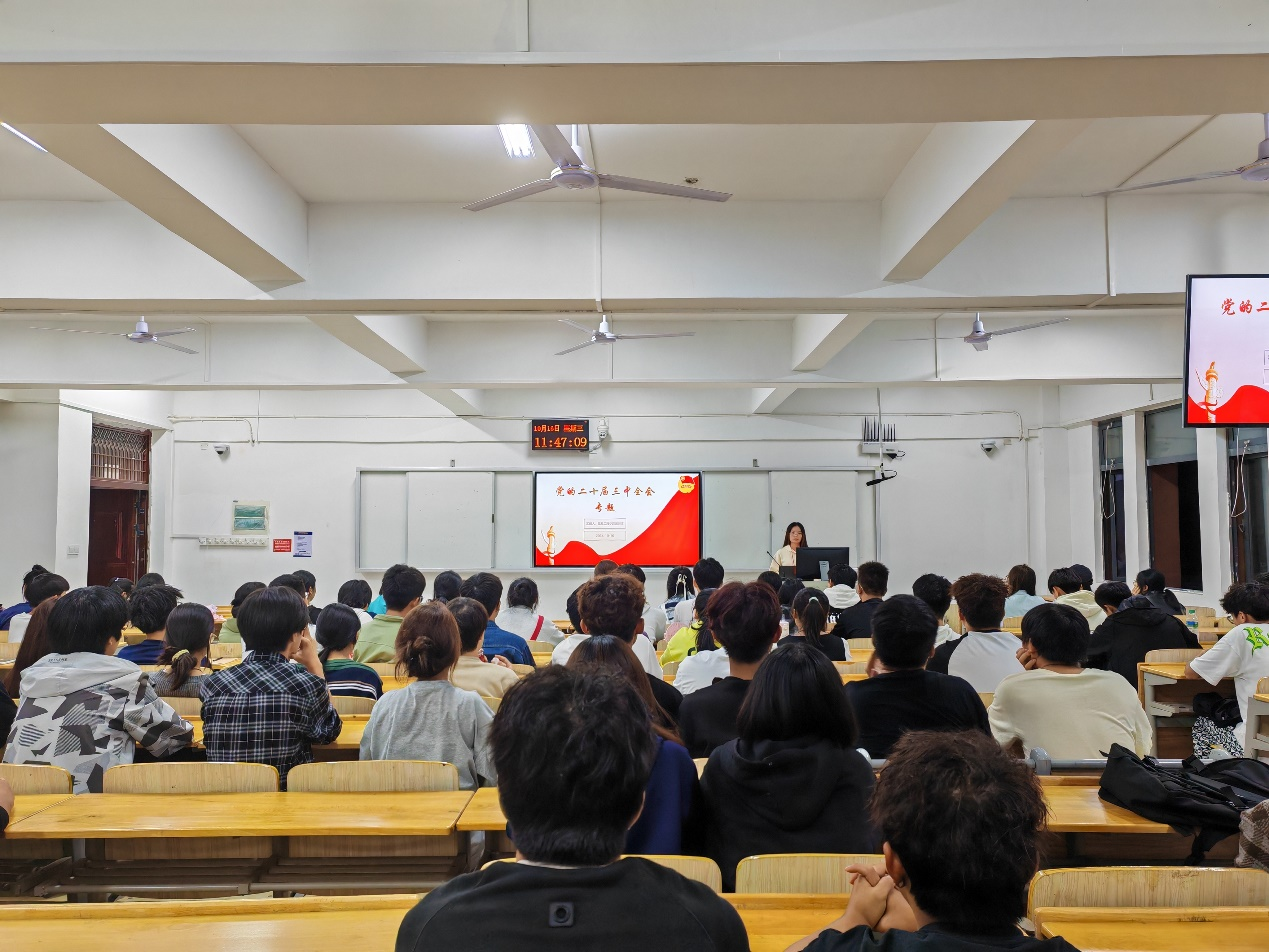 本网讯(信息工程学院)10月17日晚,信息工程学院在濂溪校区教学楼各班晚自习教室开展党的二十届三中全会精神专题学习活动,该院2024级全体学生参加。