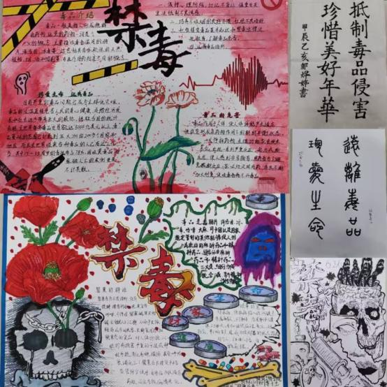 禁毒创意设计,艺术展现风采。以“禁毒阳光下,健康白云中”为主题,组织开展征文、书法、绘画、手抄报等多种形式的禁毒作品征集活动。生动的图画、有力的文字,直观地传递了毒品的危害性和禁毒工作的紧迫性,呼吁大家共同行动起来,远离毒品,珍惜生命。