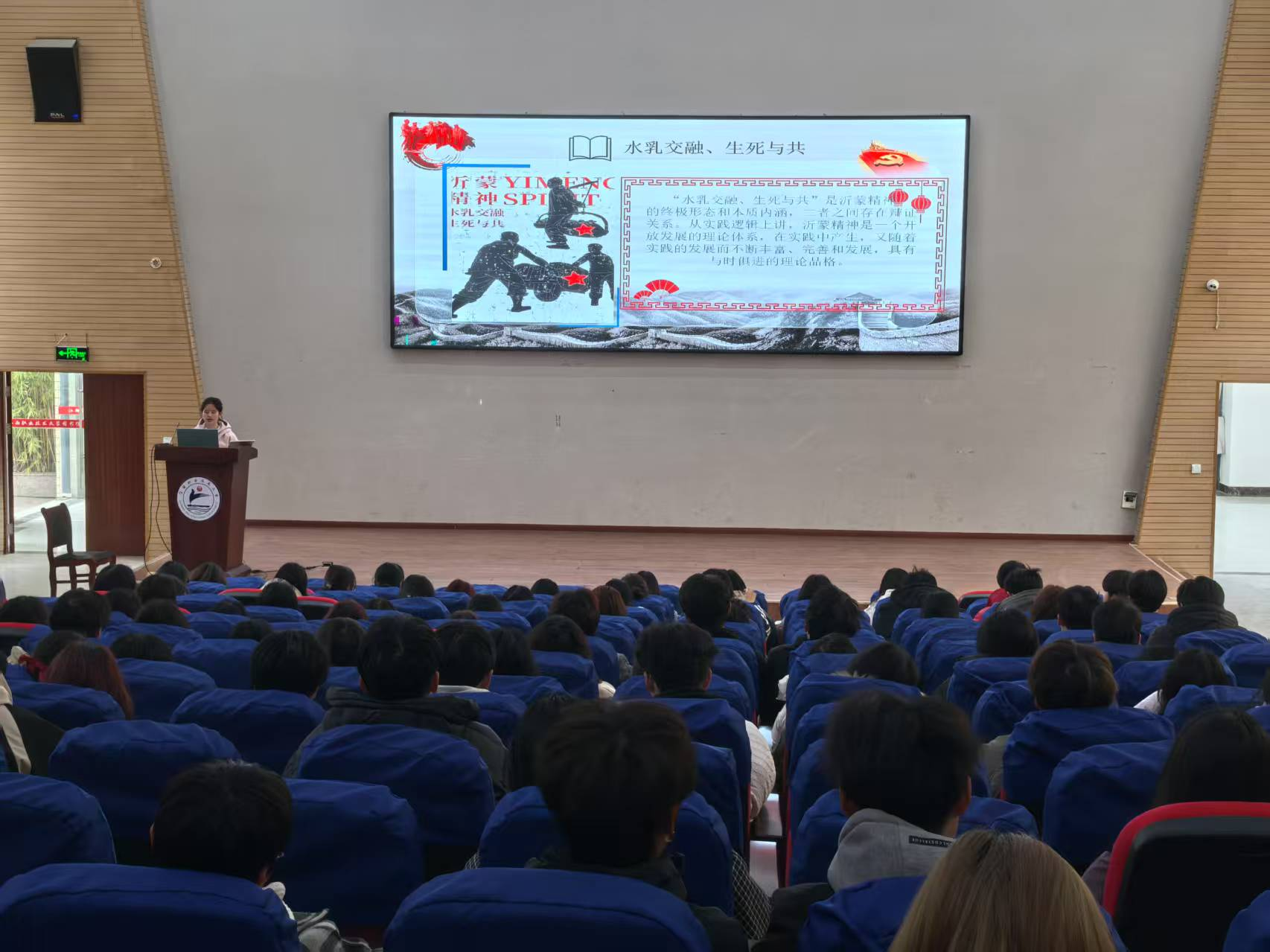 宣讲中,宣讲团成员们以沂蒙红嫂群体为切入点,生动再现了抗日战争时期沂蒙妇女用乳汁救助伤员、用柔肩架起“火线桥”等感人至深的革命故事。当讲到“沂蒙母亲”王换于开办战时托儿所,先后养育86名革命后代时,现场响起了经久不息的掌声。在互动交流环节,造价2256班丁汉梁说道:“以前只知道沂蒙是革命老区,今天才深刻理解沂蒙精神的深刻内核,作为新时代青年,我们既要铭记红嫂们用生命书写的忠诚,更要将这种精神转化为矢志报国的实际行动。”