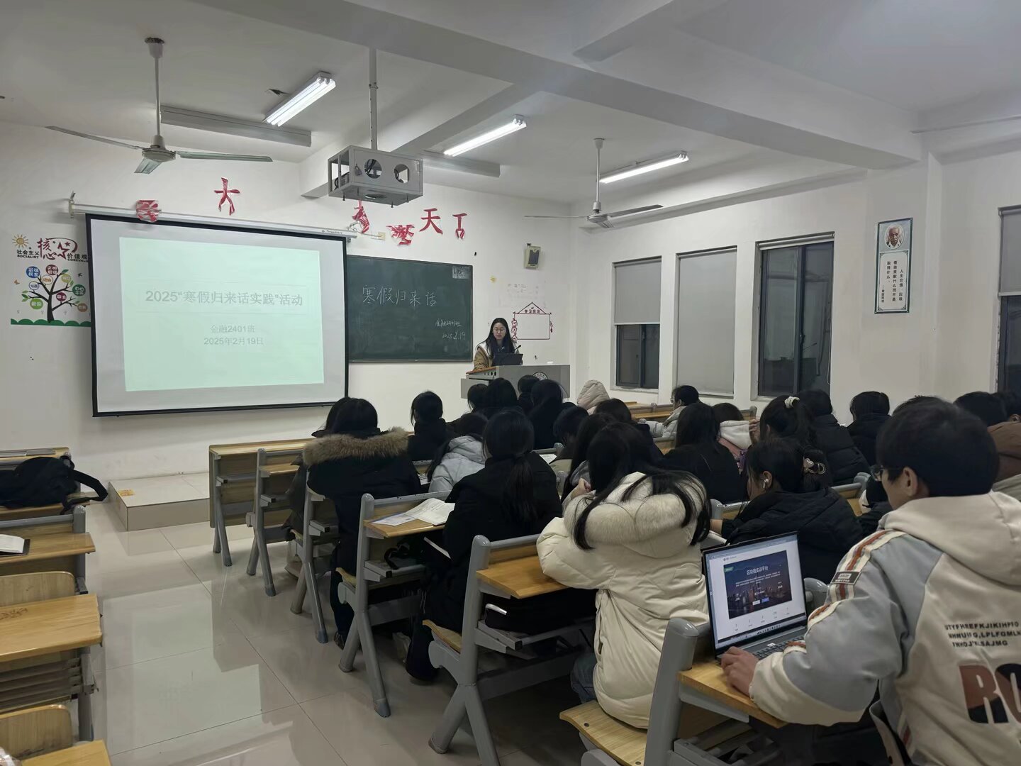本网讯(财会金融学院 舒典)2月17日至21日,财会金融学院在濂溪校区各班晚自习教室开展“寒假归来话实践”活动,该院大一大二学生参加。