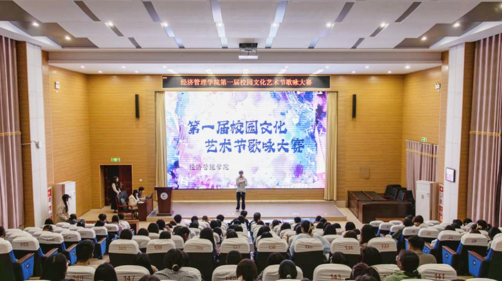 本网讯(经济管理学院)4月7日晚,经济管理学院在办公楼报告厅开展“青春筑梦,声动经管”歌咏大赛,30余名选手参与比赛。