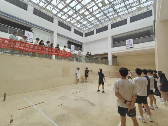 本网讯(信息工程学院)4月19日、20日,信息工程学院学生素质拓展中心,清和汉韵文化传播学生协会和毛泽东诗词学生学习社在濂溪校区科创楼一楼联合开展第五届“臻羽杯”大学生羽毛球公开赛,全校各年级羽毛球爱好者近100人参加。