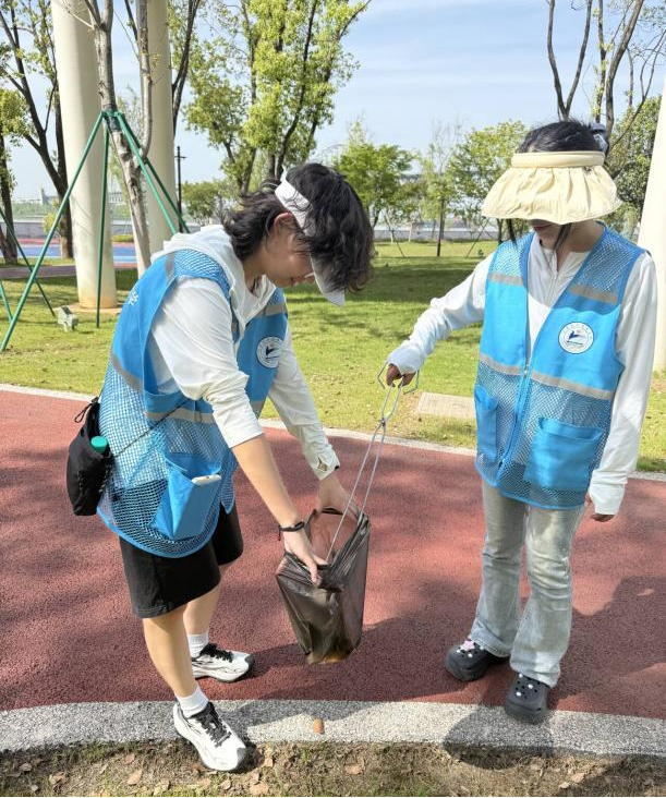 活动当天,大家身着统一的小马甲,手持垃圾袋、夹子等工具,沿着公园绿道弯腰捡拾塑料袋、烟头、食品包装等杂物,重点对游客休憩区、绿化带隐蔽角落进行“地毯式”清理。在清理过程中,他们还化身“文明劝导员”,主动提醒游客不乱丢垃圾。