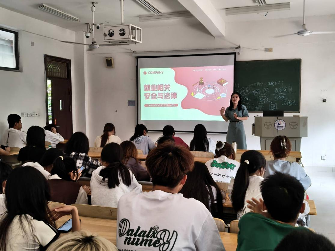本网讯(信息工程学院)为增强大学生法律意识及风险防范能力,5月7日下午,信息工程学院在濂溪校区教学楼113教室举办“筑牢安全防线 识破就业陷阱”专题就业法律法规知识宣讲活动,该院毕业班学生代表近60人参加。